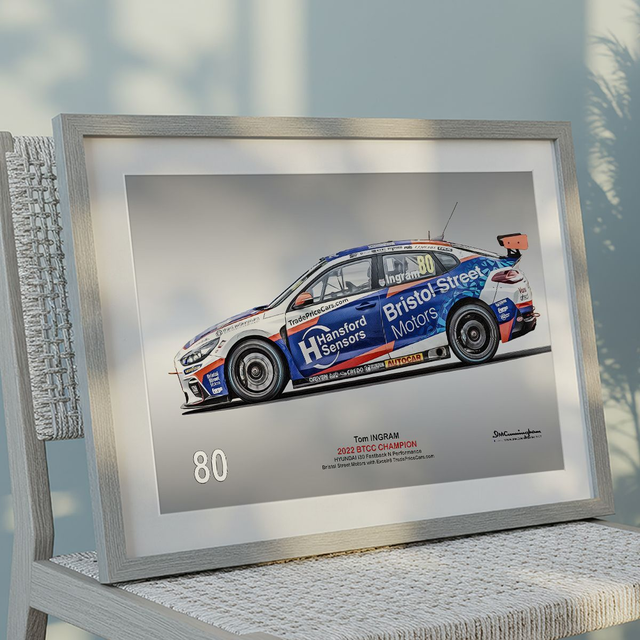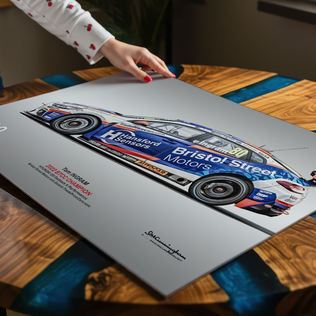 Motosport artwork by Ian Cunningham, a renowned photographer and graphic artist. Each artwork is a fusion of trackside photography and digital artistry, showcasing championship winning cars.