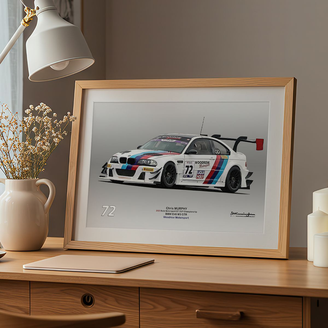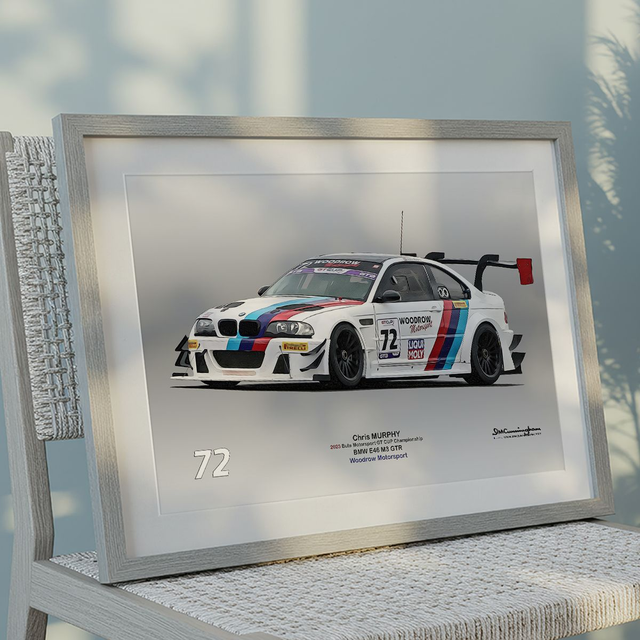 Motosport artwork by Ian Cunningham, a renowned photographer and graphic artist. Each artwork is a fusion of trackside photography and digital artistry, showcasing championship winning cars.
