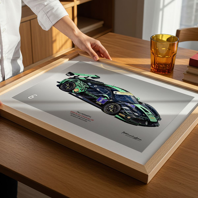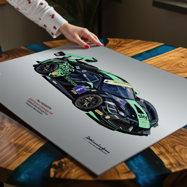 Motosport artwork by Ian Cunningham, a renowned photographer and graphic artist. Each artwork is a fusion of trackside photography and digital artistry, showcasing championship winning cars.