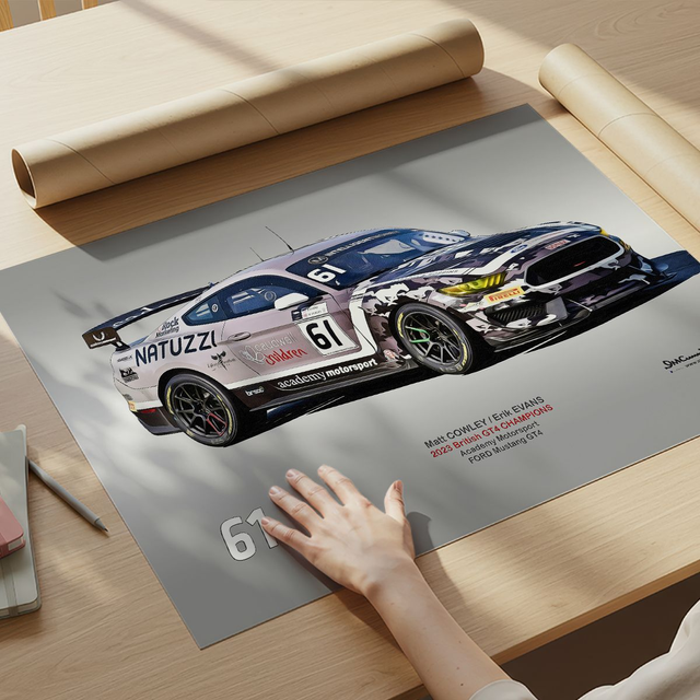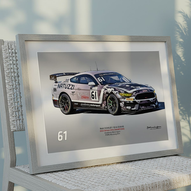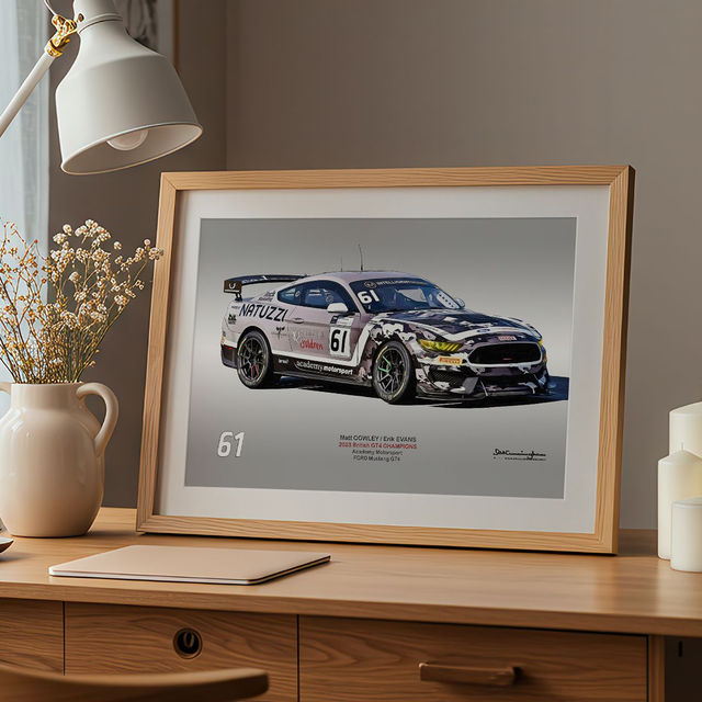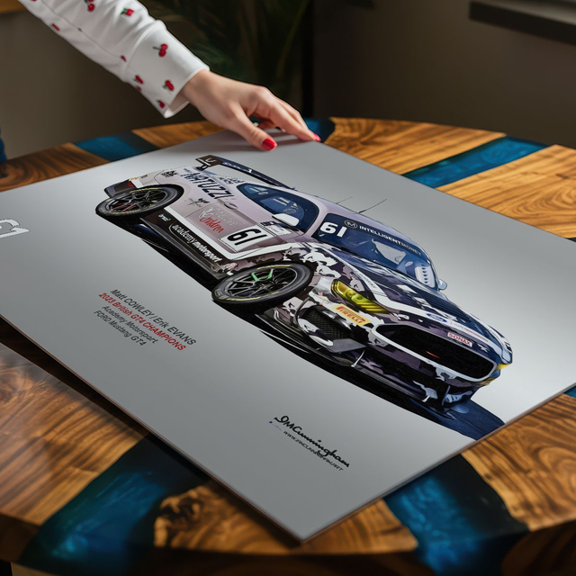 Motosport artwork by Ian Cunningham, a renowned photographer and graphic artist. Each artwork is a fusion of trackside photography and digital artistry, showcasing championship winning cars.