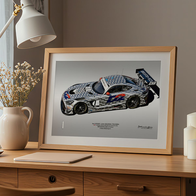 Motosport artwork by Ian Cunningham, a renowned photographer and graphic artist. Each artwork is a fusion of trackside photography and digital artistry, showcasing championship winning cars.