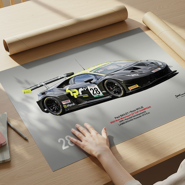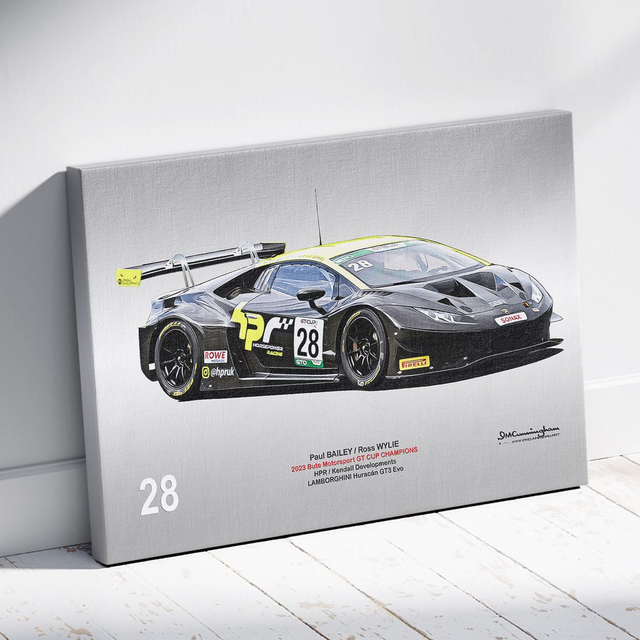 Motosport artwork by Ian Cunningham, a renowned photographer and graphic artist. Each artwork is a fusion of trackside photography and digital artistry, showcasing championship winning cars.