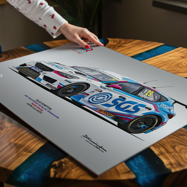 Motosport artwork by Ian Cunningham, a renowned photographer and graphic artist. Each artwork is a fusion of trackside photography and digital artistry, showcasing championship winning cars.