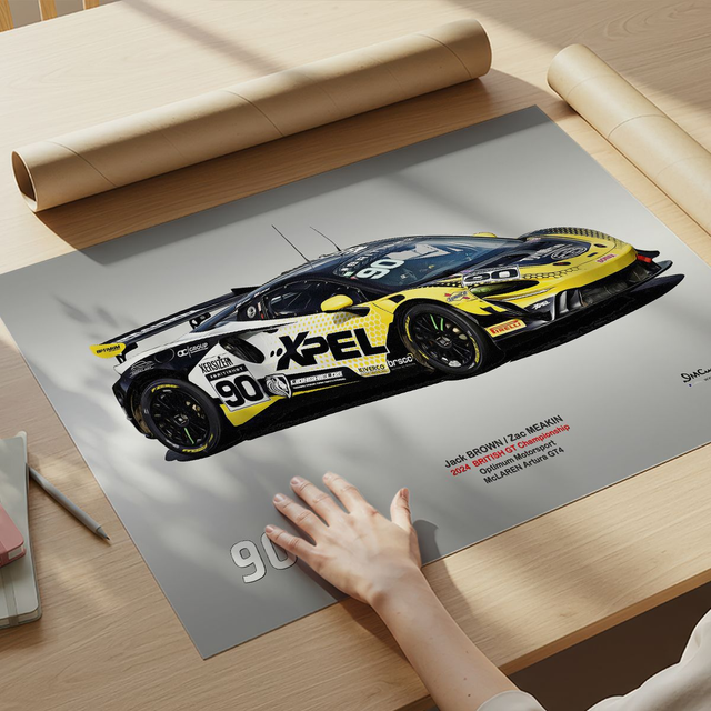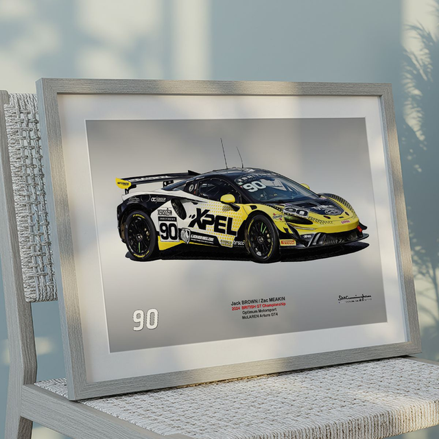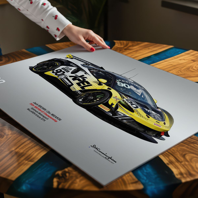 Motosport artwork by Ian Cunningham, a renowned photographer and graphic artist. Each artwork is a fusion of trackside photography and digital artistry, showcasing championship winning cars.