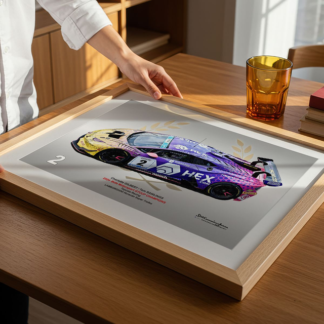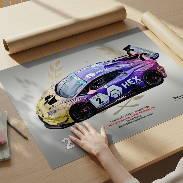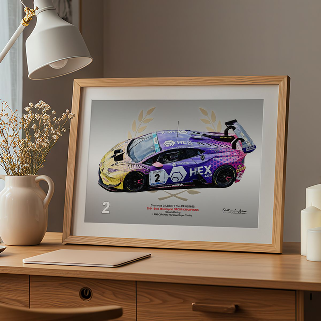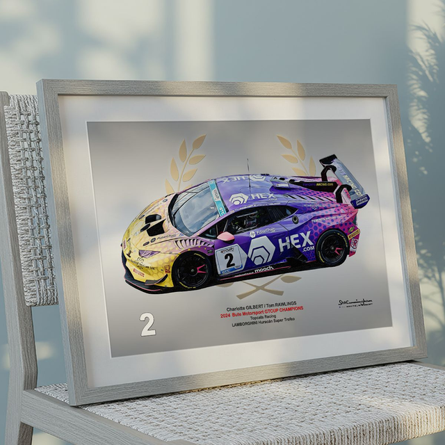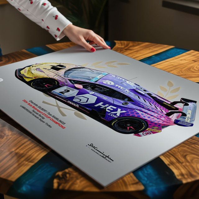 Motosport artwork by Ian Cunningham, a renowned photographer and graphic artist. Each artwork is a fusion of trackside photography and digital artistry, showcasing championship winning cars.
