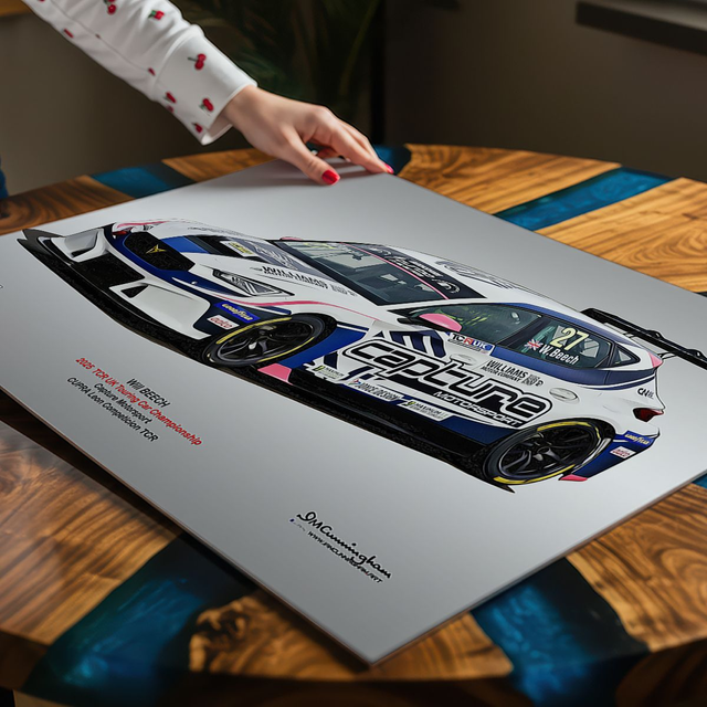 Motosport artwork by Ian Cunningham, a renowned photographer and graphic artist. Each artwork is a fusion of trackside photography and digital artistry, showcasing championship winning cars.