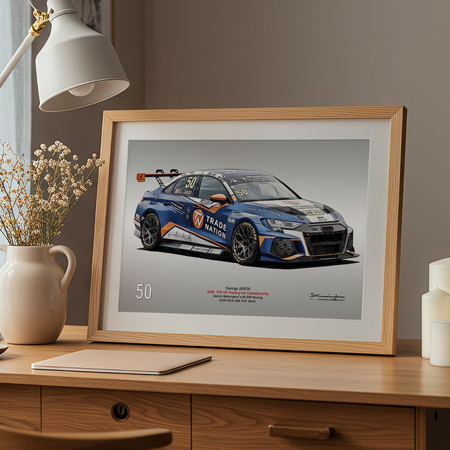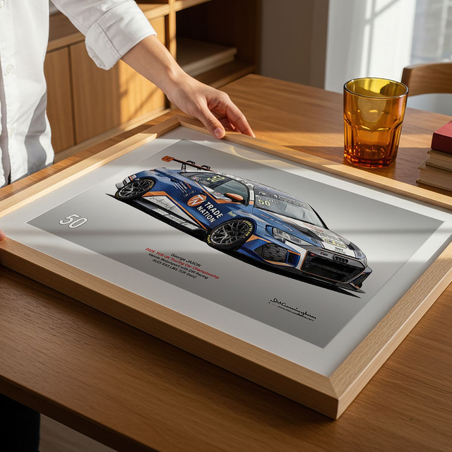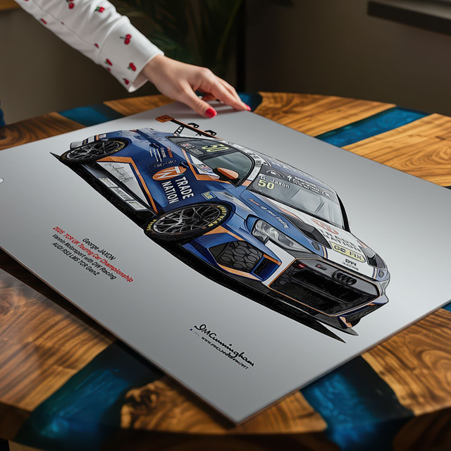 Motosport artwork by Ian Cunningham, a renowned photographer and graphic artist. Each artwork is a fusion of trackside photography and digital artistry, showcasing championship winning cars.