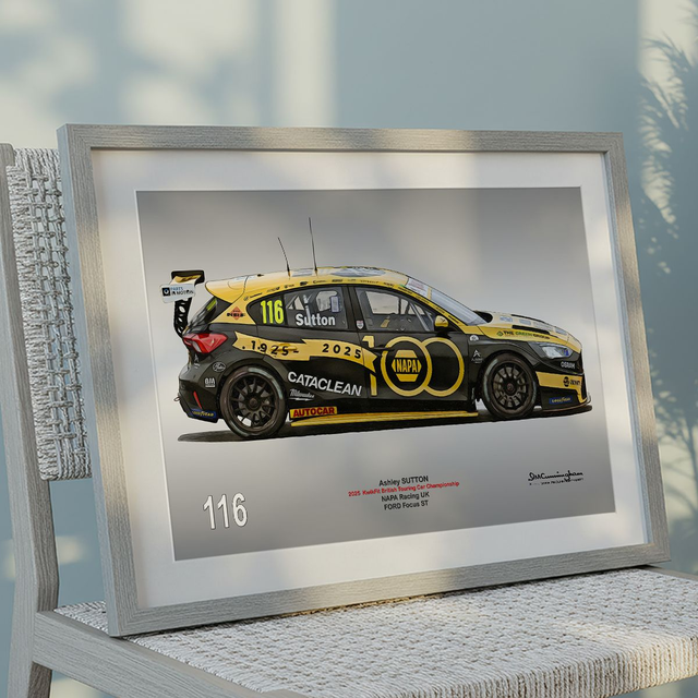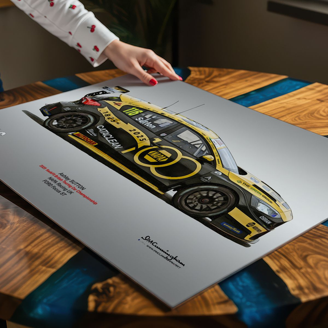 Motosport artwork by Ian Cunningham, a renowned photographer and graphic artist. Each artwork is a fusion of trackside photography and digital artistry, showcasing championship winning cars.