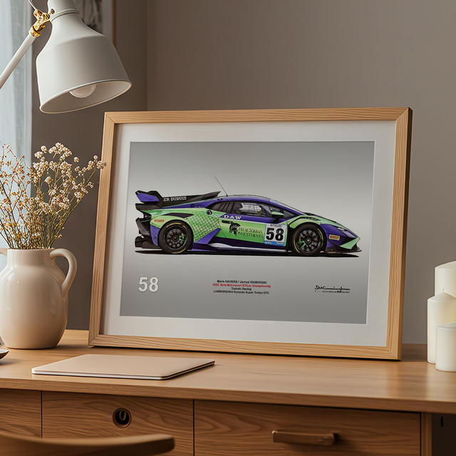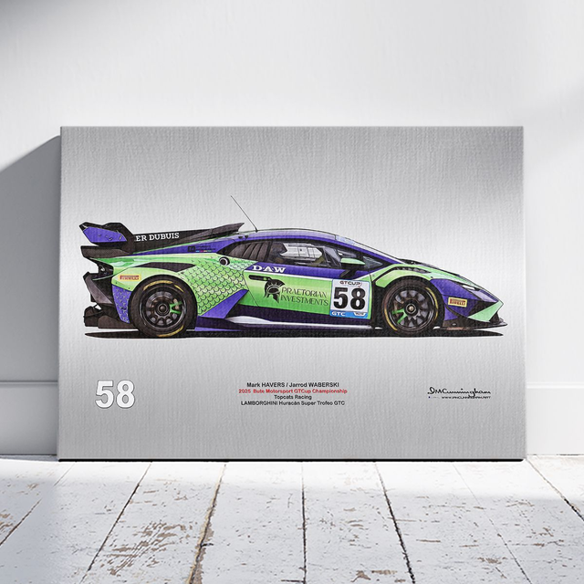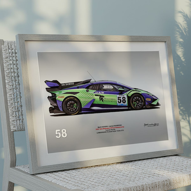 Motosport artwork by Ian Cunningham, a renowned photographer and graphic artist. Each artwork is a fusion of trackside photography and digital artistry, showcasing championship winning cars.