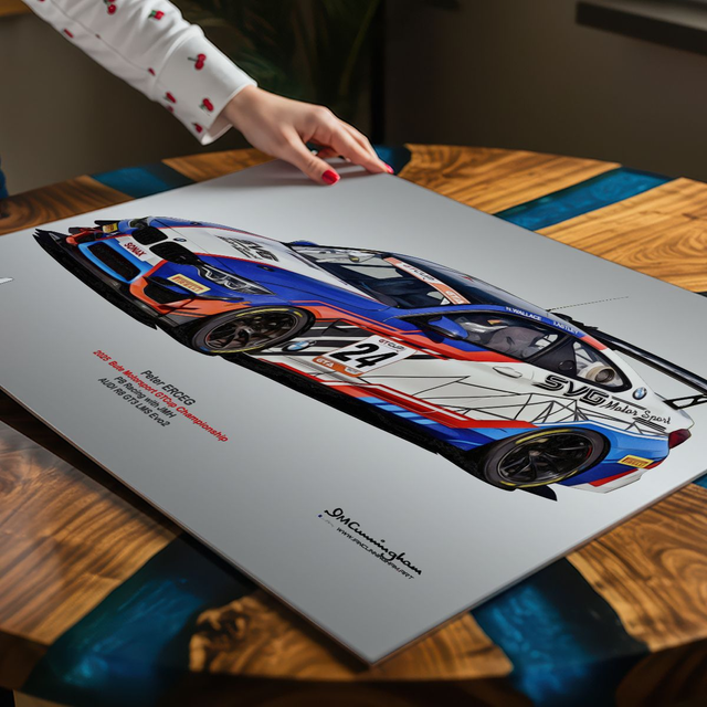 Motosport artwork by Ian Cunningham, a renowned photographer and graphic artist. Each artwork is a fusion of trackside photography and digital artistry, showcasing championship winning cars.