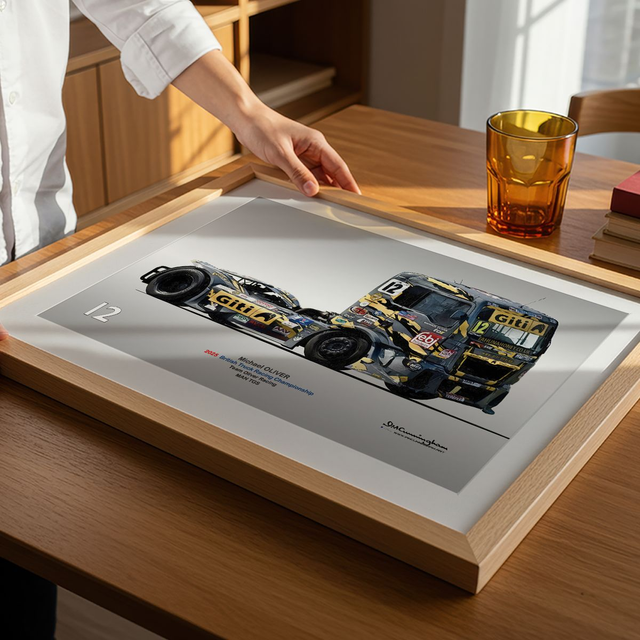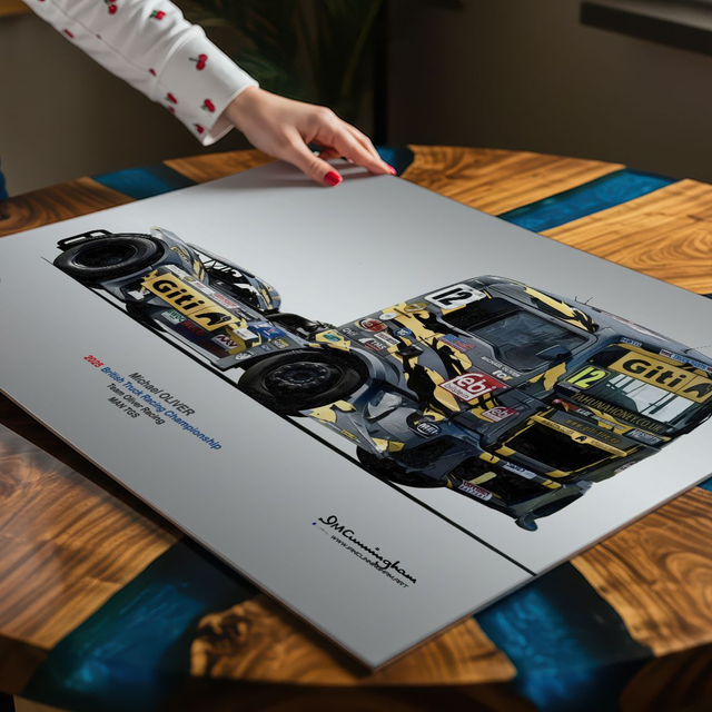 Motosport artwork by Ian Cunningham, a renowned photographer and graphic artist. Each artwork is a fusion of trackside photography and digital artistry, showcasing championship winning cars.