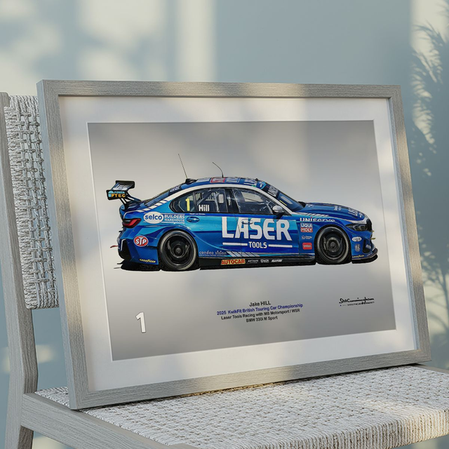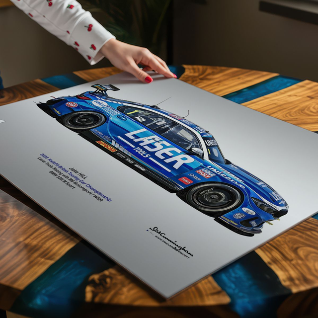 Motosport artwork by Ian Cunningham, a renowned photographer and graphic artist. Each artwork is a fusion of trackside photography and digital artistry, showcasing championship winning cars.