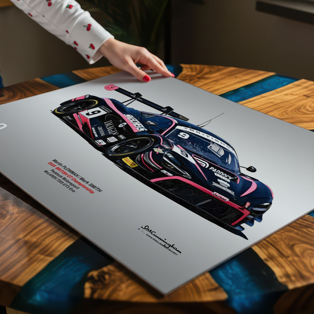 Motosport artwork by Ian Cunningham, a renowned photographer and graphic artist. Each artwork is a fusion of trackside photography and digital artistry, showcasing championship winning cars.